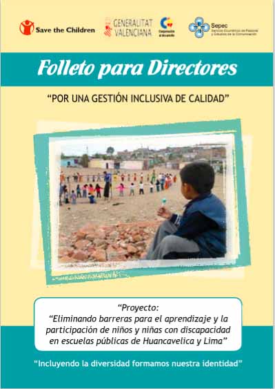 El proyecto “Eliminando barreras para el aprendizaje y la participación de niños y niñas con discapacidad en escuelas públicas de Huancavelica y Lima” busca involucrar a los diversos actores de la comunidad educativa para mejorar la calidad del proceso de inclusión de niños y niñas con discapacidad en la Educación Básica Regular y para que en las comunidades se institucionalicen espacios de vigilancia de las políticas públicas a favor de los derechos de la niñez, con especial énfasis en los niños y niñas con algún tipo de discapacidad.