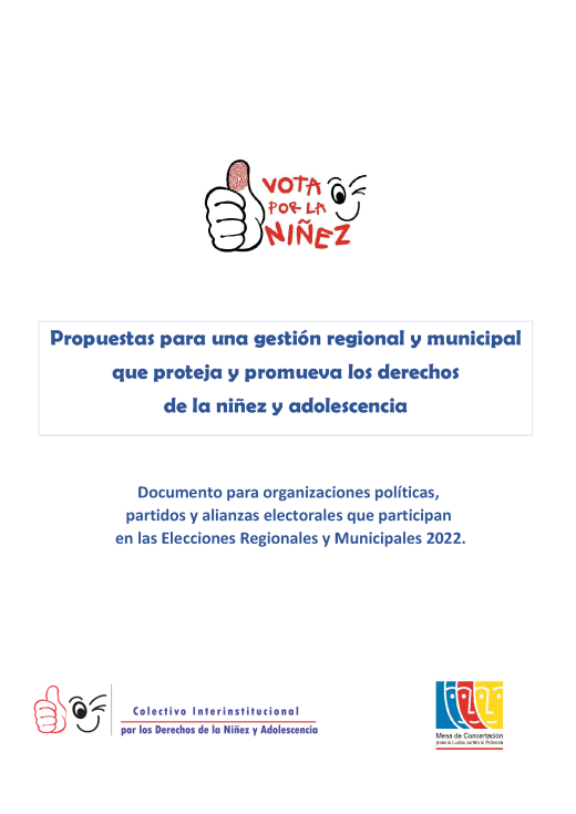 Este documento es el resultado del trabajo conjunto con el grupo del Colectivo Interinstitucional por los Derechos de la Niñez y la Adolescencia de la Mesa de Concertación para la Lucha Contra la Pobreza.